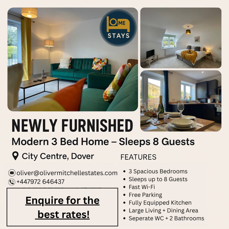 β¨ Work-ready 3-bed home in Dover, perfect for contractor teams or groups! π‘ ποΈ Sleeps up to 8 with flexible bed setups, 2 sofa beds, and super-king zip-links. π Free on-site parking + EV charger β‘ Fast Wi-Fi & Smart TV πΆ Easy self check-in π Close to Port of Dover, A2/M2/M20 & business parks.